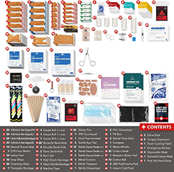 Completo e organizzato: contiene forniture mediche essenziali sistematicamente sistemate in una custodia resistente e portatile con scomparti trasparenti per un rapido accesso.